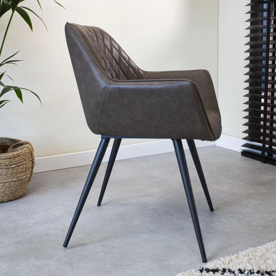 Industriële Eetkamerstoel Cara Taupe – Kunstleder – Taupe