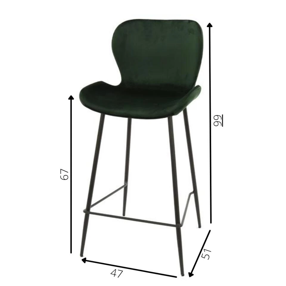 De barkruk is bekleed met velvet. Fluweel is een stofsoort ontstaan in Azië en dat rond 1400 is overgewaaid naar Europa. Bij fluweel worden er kleine lusjes geweven. Hierdoor ontstaat er aan de bovenkant een zachte, glanzende stof.
