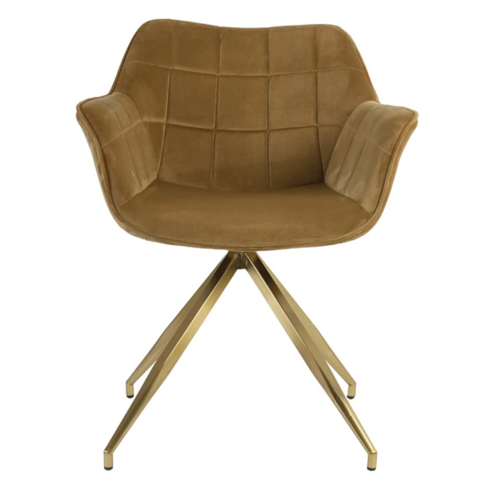 Eetkamerstoel Jaimy van het mooie woonmerk Light & Living straalt luxe en comfort uit. Jaimy is verkrijgbaar in meerdere prachtige kleuren. Ze is bekleed met een zachte velvet stof die ongelofelijk comfortabel aanvoelt. Deze uitvoering bestaat uit een karamel velvet bekleding. Jaimy heeft een sierlijk maar stevig onderstel, in dit geval in het goud gekleurd. De zitting is voorzien van een speels patroon voor een uniek effect. De stoel is zeer comfortabel en komt tot haar recht in een smaakvol interieur. Doordat Jaimy voorzien is van armleuningen is het mogelijk uren na te tafelen met je favoriete tafelgasten.