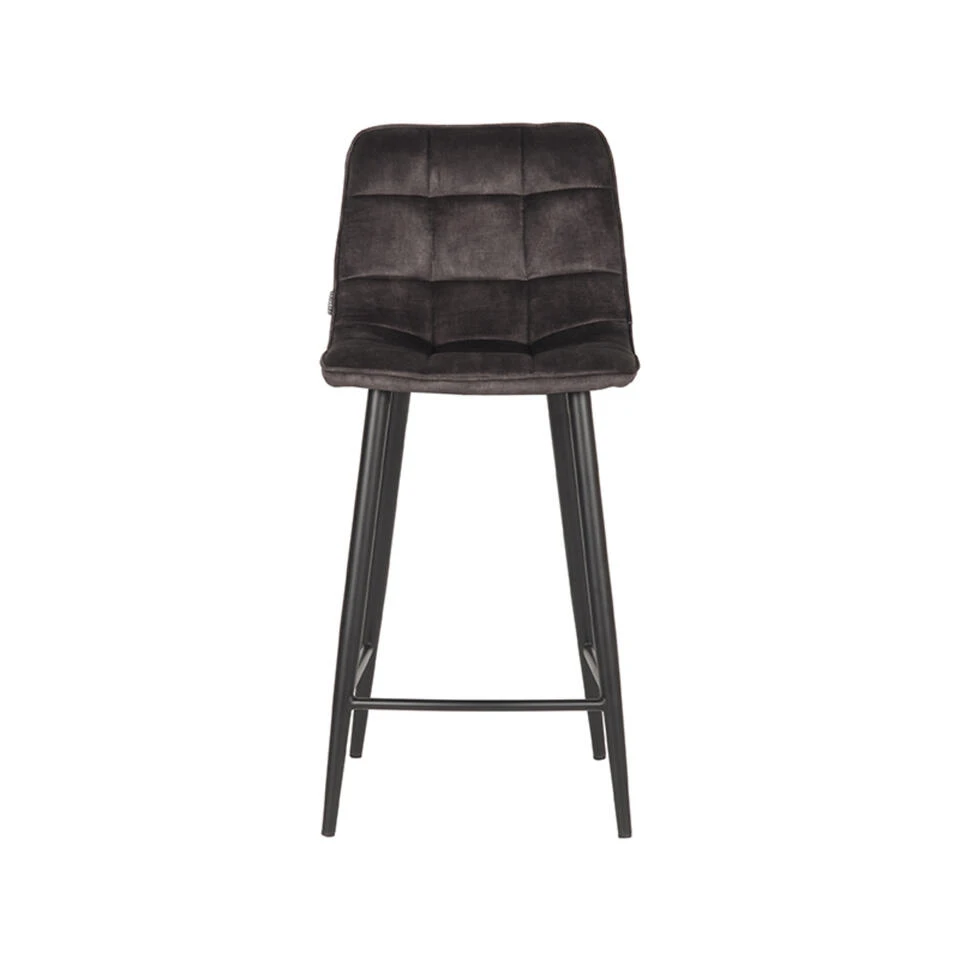 Barkruk Jelt van LABEL51 is een prachtige barkruk in de kleur antraciet velours, waar comfort en verfijning samen komen. De prachtige blokstiksels in combinatie met het 3D effect door de extra vulling vormen een lust voor het oog!