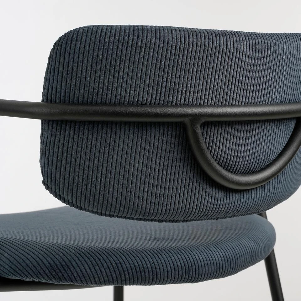 De Nanet barkruk van Mica Decorations staat mooi in contrast met het zwarte, metalen frame en de zachte stof. De zitting is gemaakt van ribstof, fluweel en heeft een prachtige donkerblauwe kleur. Hierdoor is de barkruk industrieel en daarnaast ook luxueus en comfortabel. Stijlvol aan een bar of in je keuken. De barkruk met armleuning heeft een afmeting van L53 x B46 x H91 cm. De zithoogte is 65 cm. Leuk om te combineren met meerdere barkrukken uit de Nanet collectie van Mica Decorations.