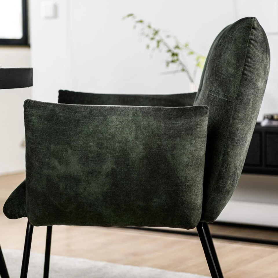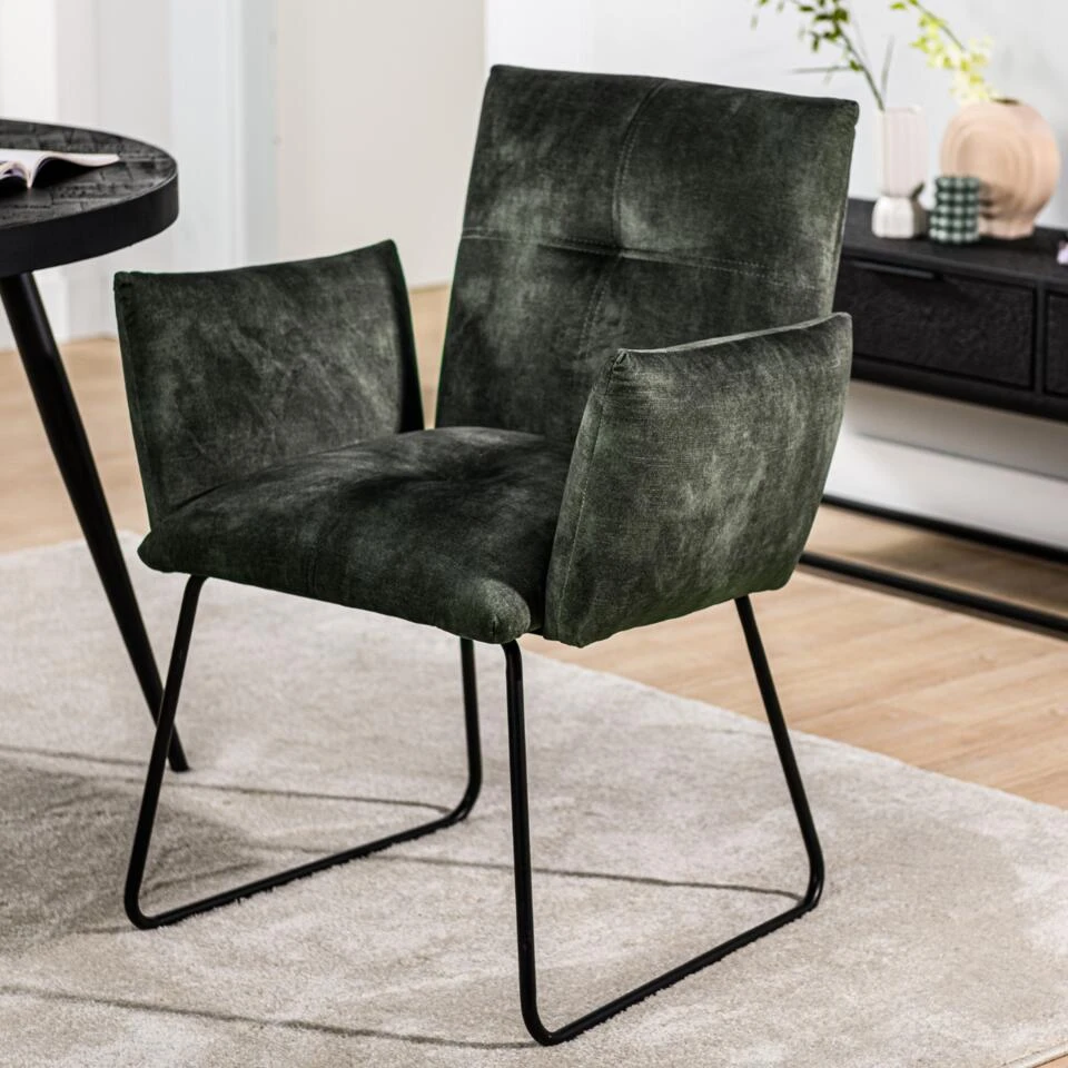Rogier armstoel velvet in de kleur groen is de perfecte combinatie van comfort en design. Deze prachtige eetkamerstoel is super comforatabel en zorgt ervoor dat jij zorgeloos kunt genieten met jouw favoriete gezelschap. Rogier is voorzien van een leuke slede poot in zwart staal. Hij heeft een comfortabele uitstraling door de breedte van de stoel en de hoogte van de rugleuning. Van alle kanten is deze eetkamerstoel een genot om naar te kijken. De armhoogte 68 cm en de zithoogte 51 cm. Het onderstel geeft deze stoel een speels uiterlijk. De groene velvet stof zorgt ervoor dat Rogier past binnen diverse interieurstijlen en helemaal van nu is. Opzoek naar een andere stof? Kijk dan eens naar de soortgelijke Roeli armstoel in het groen van hetzelfde woonmerk Vurna.