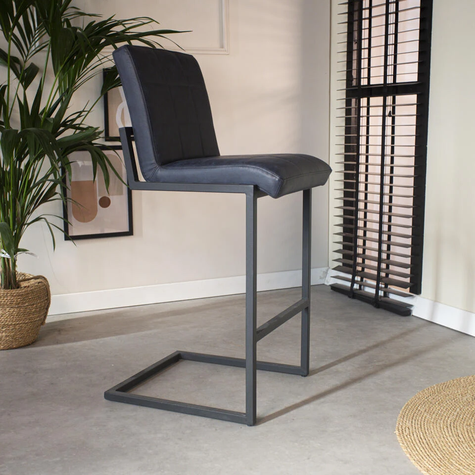 Het frame van de barkruk is van gepoedercoat zwart staal, wat in combinatie met zitting zorgt voor een moderne look. Onder dit product zitten vloerdoppen die laminaat beschermen tegen krassen. Er worden viltjes meegeleverd om overige vloeren te beschermen tegen krasvorming.