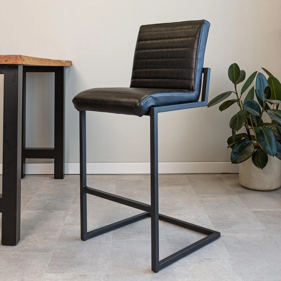 Set Van 2 Barkrukken Industrieel Kuba Zwart Zithoogte 78 Cm Kunstleder