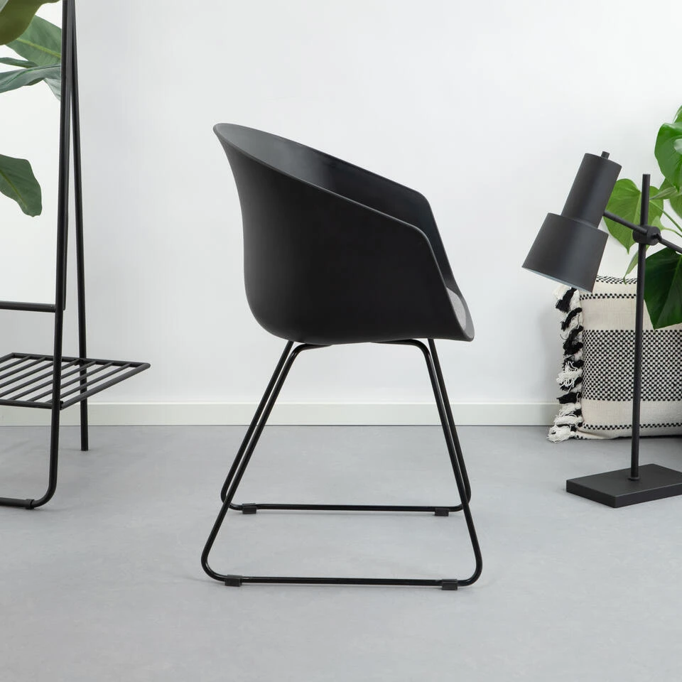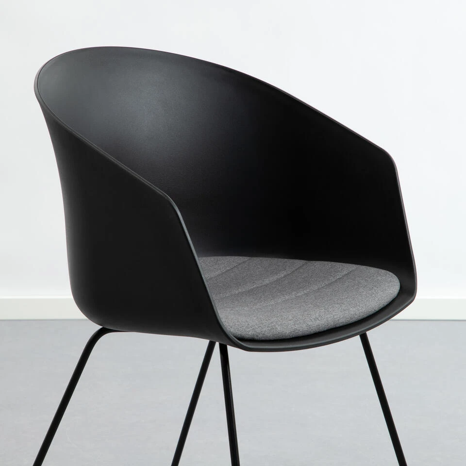 Op zoek naar een mooie eetkamerstoel? ‘Doris’ is waar je naar op zoek bent. Deze stoel is eenvoudig en stijlvol door de kunststof kuip. Het contrasterende zitkussen in het zitgedeelte en de armleuningen zorgen voor een comfortabele zit. Het metalen onderstel heeft een bijzondere vorm en maakt van de stoel een eyecatcher.