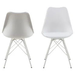 Toon je gevoel voor stijl met deze tijdloze eetkamerstoel. De organisch gevormde zitting past comfortabel langs de natuurlijke kromming van je rug en helpt je een goede houding te behouden, en een kussen zorgt voor een zachte zit voor die lange eetsessies. De zitting wordt ondersteund door metalen poten met poedercoating die het moderne uiterlijk compleet maken.