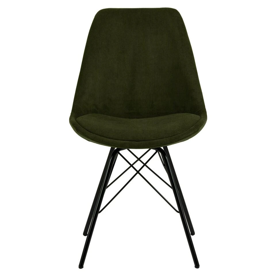 Toon je gevoel voor stijl met deze tijdloze eetkamerstoel in beige corduroy stof. De organisch gevormde zitting past comfortabel langs de natuurlijke kromming van je rug en helpt je een goede houding te behouden, en een kussen zorgt voor een zachte zit voor die lange eetsessies. De zitting wordt ondersteund door een zwart gepoedercoat metalen onderstel dat de moderne uitstraling compleet maakt.