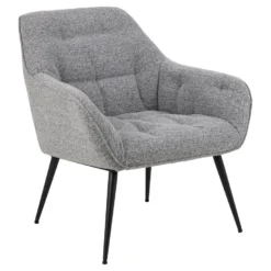 Een tijdloos silhouet, details en zachte bekleding. Wat kun je nog meer wensen in een loungestoel? De grijze bekleding heeft een luxe krulstructuur met een zachte touch. Met de tufting details heeft de stoel een luxe uitstraling. Hij staat op een stevig zwart ruw gepoedercoat metalen onderstel. Het enige wat je hoeft te doen is je favoriete boek te pakken en in stijl te loungen.