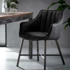 Livingfurn – Eetkamerstoel Benthe Grey Velvet – Stof – 57x48x82