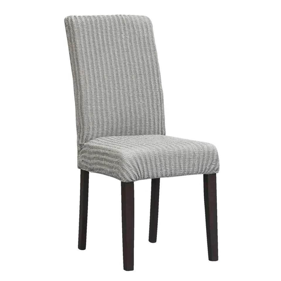 Stoellhoes Annabeth is een grijze hoes voor eetkamerstoelen gemaakt van 60% katoen, 35% polyester en 5% elastan. Deze hoes is ideaal ter bescherming van je stoelen. Je kunt de hoes gemakkelijk aanbrengen en weer verwijderen.