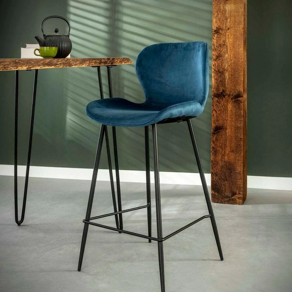 Bent u op zoek naar een moderne, stijlvolle en stoere barstoel? Dan is barstoel Verona een perfecte keuze! Deze barstoel is uitgerust met een heerlijke kuipzitting en is geheel bekleed met een zachte blauwe velours stof. Om deze stoel helemaal af te maken, rust de zitting op een zwart gepoedercoat metalen onderstel met een voetensteun. Barstoel Verona is ook verkrijgbaar met een zitting in het donkergrijs, groen en champagne. De barkruk is te bestellen per set van vier in dezelfde kleur. De prijs op de website wordt altijd weergegeven per stuk. Zithoogte: 67 cm.