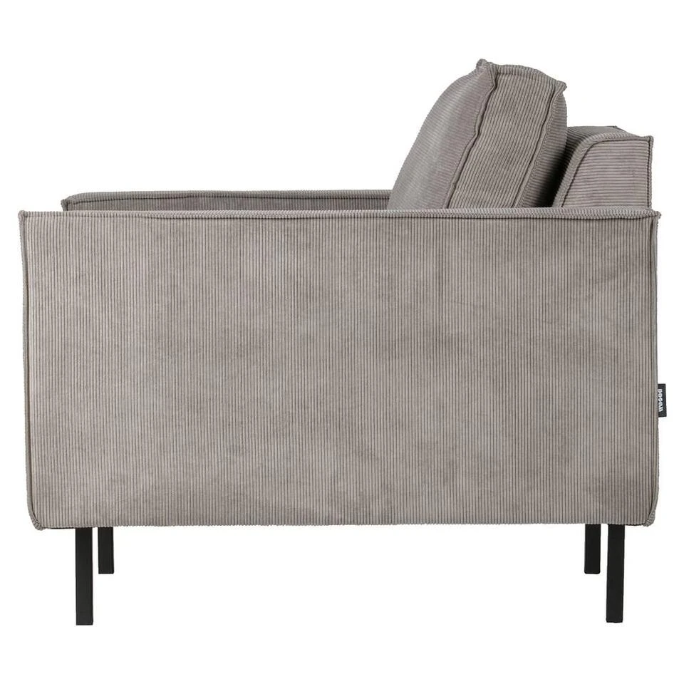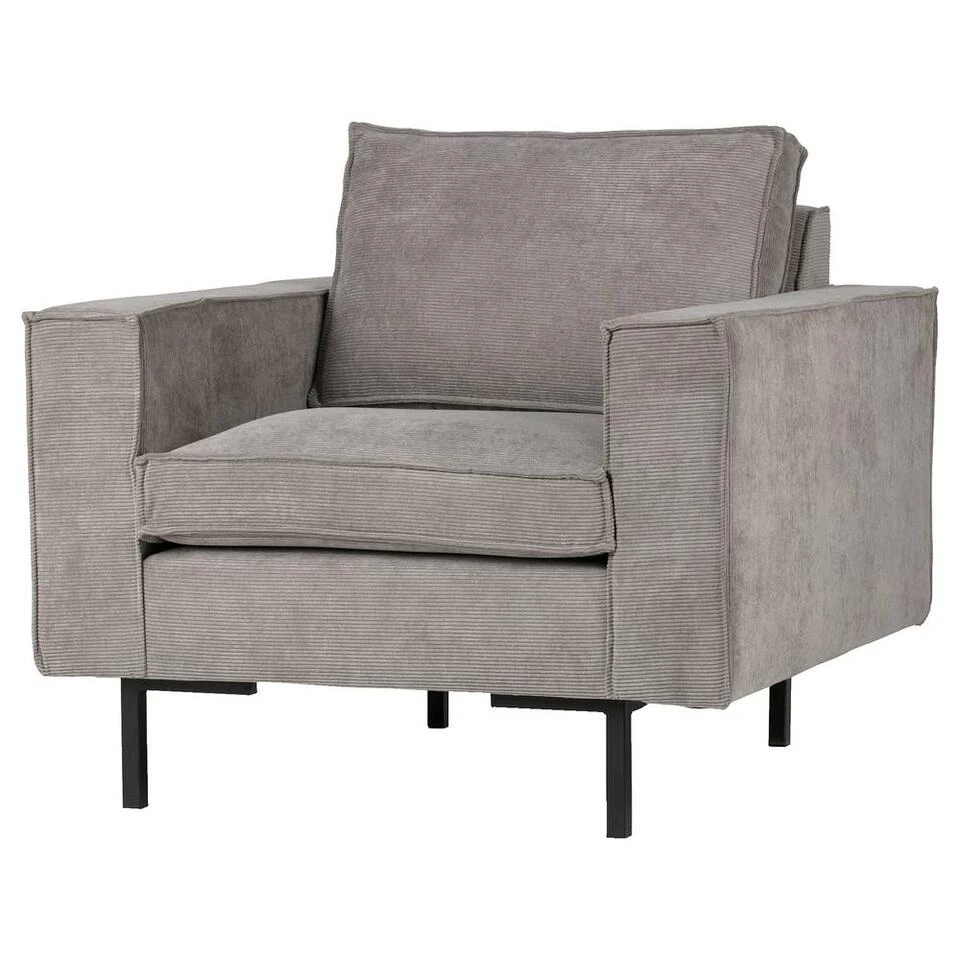 Deze luie stoel heeft een hoogwaardige polyether vulling horizontaal gestoffeerd met een elegante ribstof.