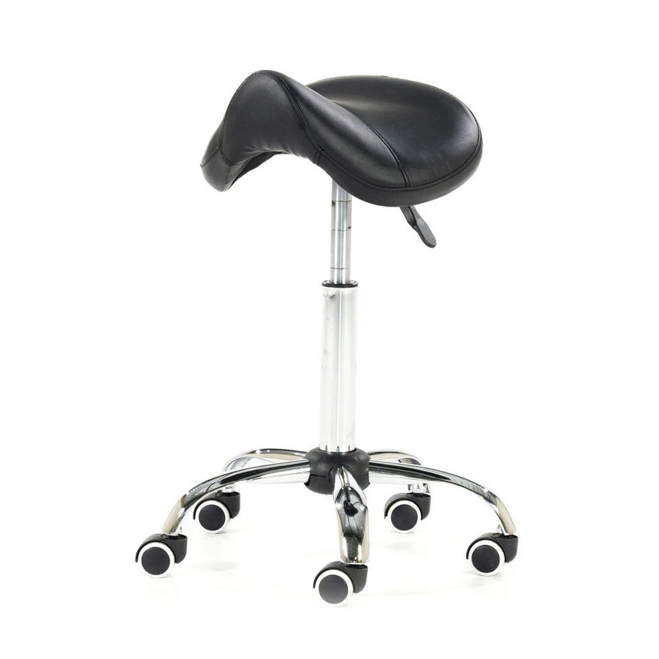 Het stevige chromen onderstel geeft de kruk een luxe uitstraling. De comfortabele zitting van de zadelkruk is bekleed met hoogwaardig zwart kunstleer en is gemakkelijk af te nemen met een vochtige doek. Past zwart niet helemaal in jouw interieur? De zadelkruk is ook verkrijgbaar in wit en grijs .